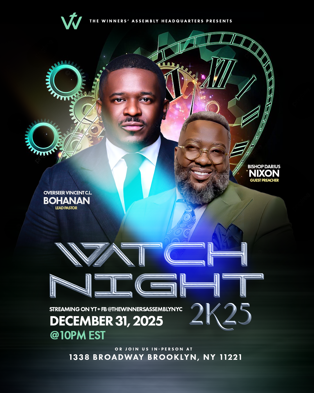 Bishop Nixon will preach at Winner Assembly’s Watch Night 2025. The address is 1338 Broadway, Brooklyn, NY 11221.