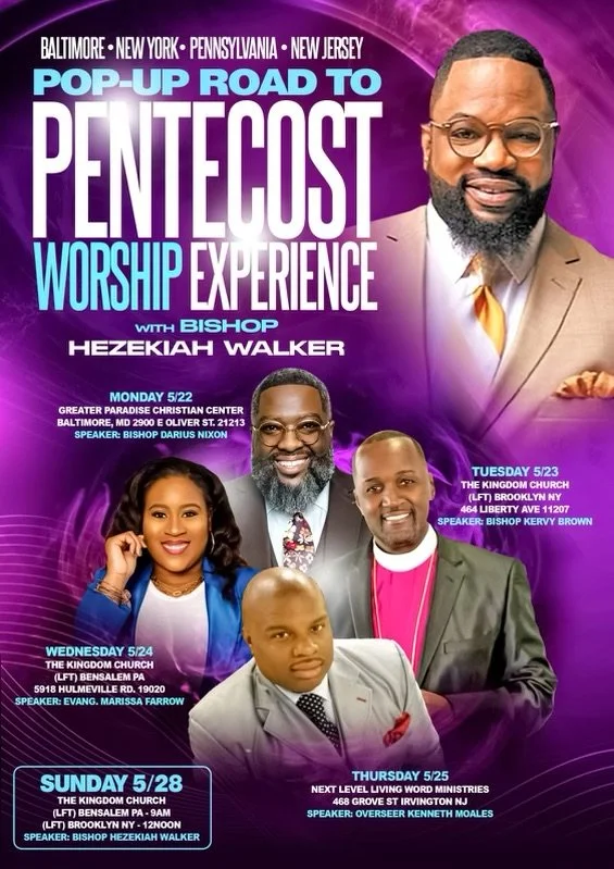 Bishop Hezekiah Walker’s Pop-up Road to Pentecost Worship Experience Monday, May 22, 2023 8:30 PM 10:30 PM Google Calendar ICS Bishop Nixon will preach for Bishop Hezekiah Walker’s Pop-up Road to Pentecost Worship Experience. The address is 2900 E Oliver Street 21213 Baltimore, MD.