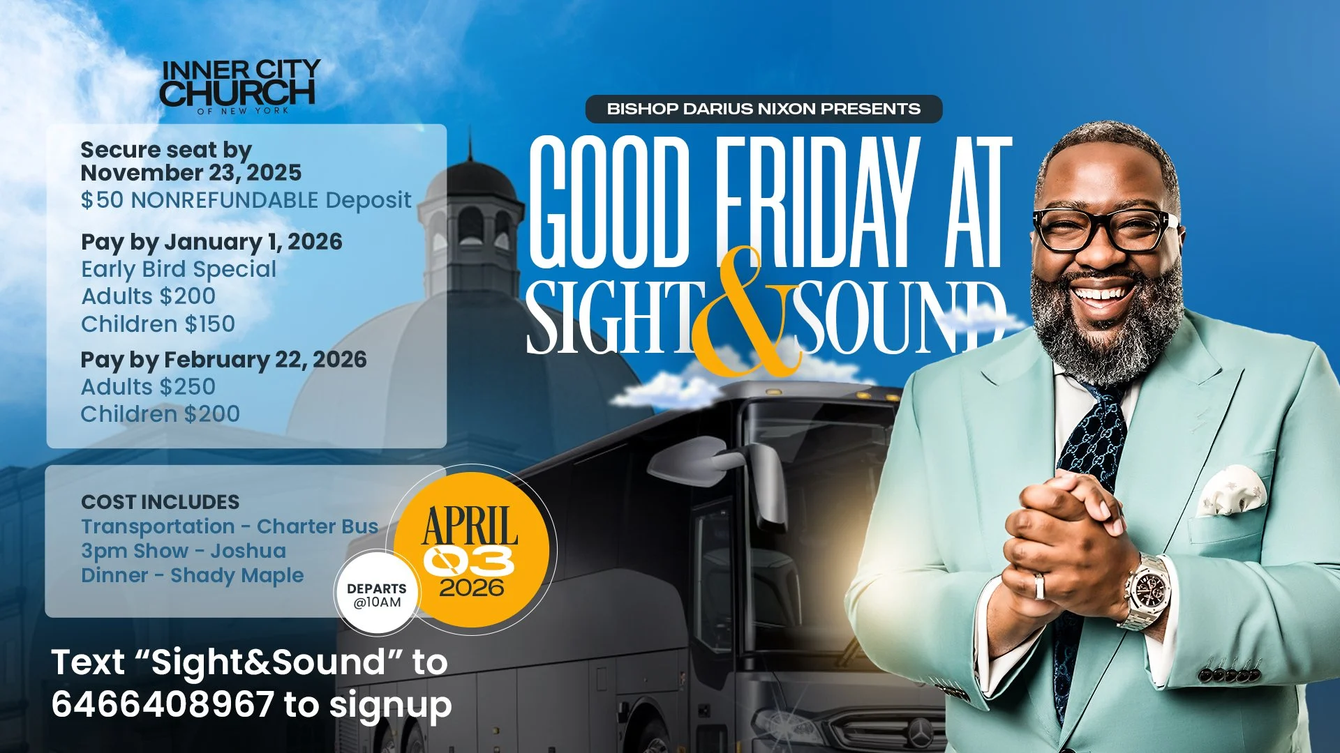 Thank you for securing your seat for Good Friday at Sight & Sound. Whether you paid in full or began with a deposit, your spot is officially reserved. We are honored to have you join us for this sacred and powerful experience — you made the right decision.