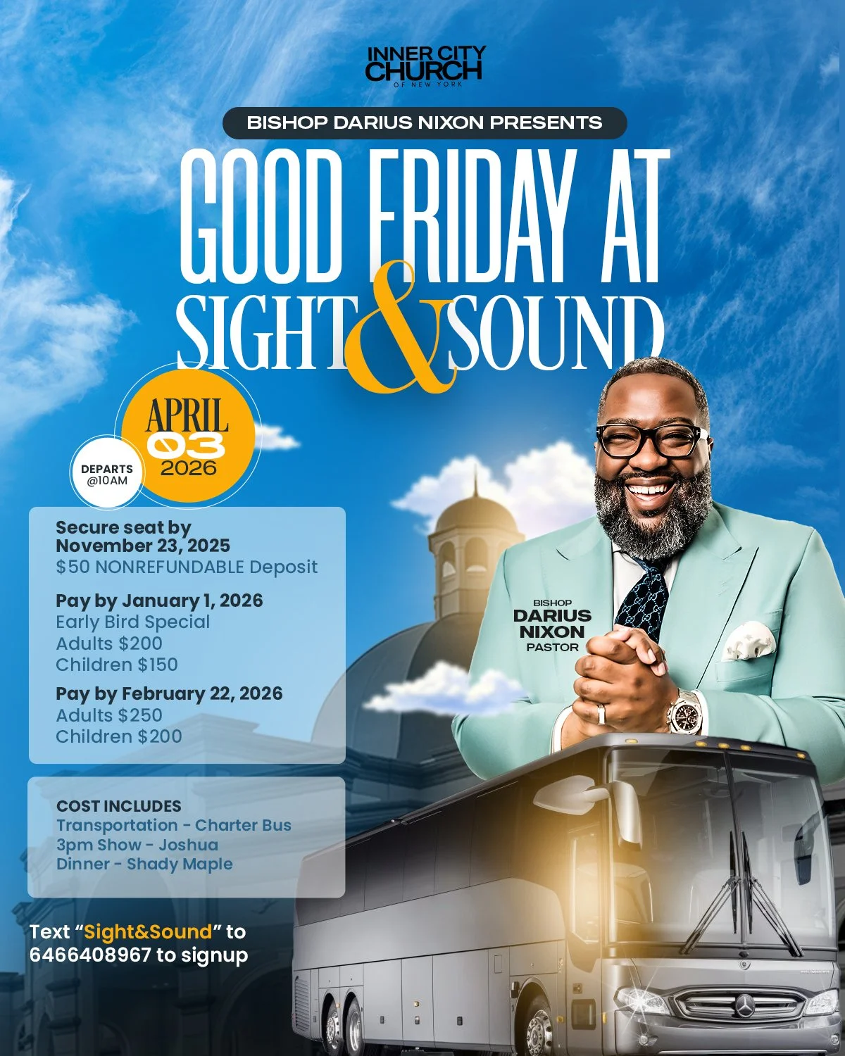 Categories: All Sight and Sound Lead Equipped Bible Talk Series All / Sight and Sound Good Friday at Sight & Sound: Deposit (Child/Adult) $50.00 Secure your seat Added! Good Friday at Sight & Sound: Adult Early Bird $200.00 Secure your seat Added! Good Friday at Sight & Sound: Child Early Bird $150.00 Secure your seat Added! Good Friday at Sight & Sound: Adult Early Bird Balance $150.00 Secure your seat Added! Good Friday at Sight & Sound: Child Early Bird Balance $100.00 Secure your seat Added!
